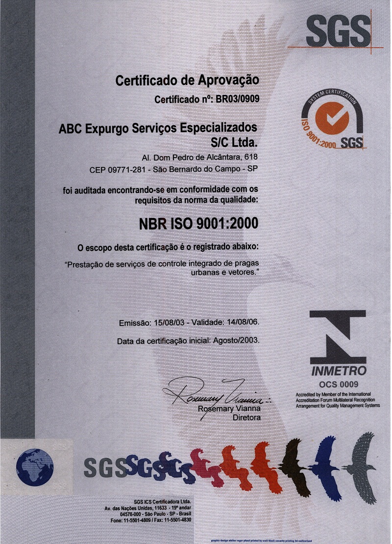 PRIMEIRA CERTIFICAÇÃO OBTIDA EM AGOSTO 2003